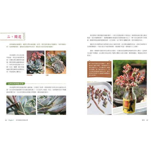 3.100種多肉植物圖鑑:各種多肉的獨家照護心得與秘訣,如何栽培和組盆最好看,還有依季節所需的澆水、日照需求小圖標,教你如何把多肉都養得健康又漂亮!