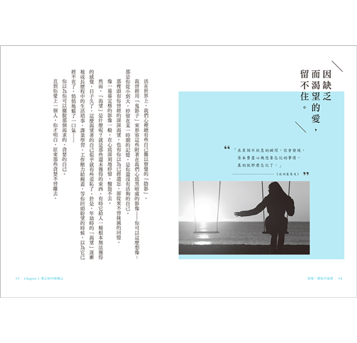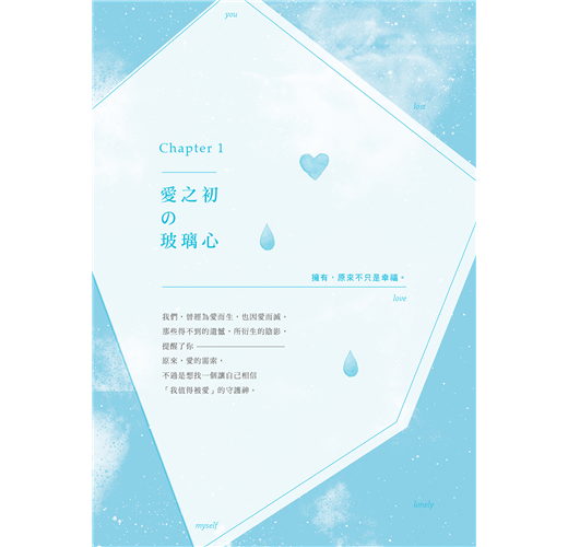 原來,愛一個人,可以不必如此寂寞……本書特色~每個曾為不懂愛而受傷的人,都會在這本書中看見自己。~