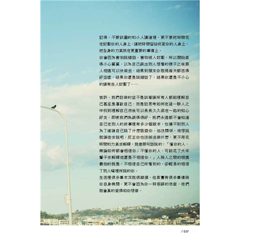 一個熱愛設計、喜歡攝影、享受音樂的男孩,喜歡用木吉他自彈自唱來創作。19歲就開始踏上背包客之路,以一顆細膩的心去體會旅行、體驗生命中的美好與不美好。認為生活,不是所有的事情都能如你所願,但絕對值得去嘗試;認為夢想這條路,踏上了就算有多艱難也要努力到達。擁有敏銳細膩的觀察與感受,於是透過書寫傳達,讓更多人在夢想的路上前進、在愛裡學習勇敢、最後找到最簡單純粹的自己。