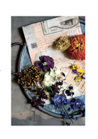 這幾年專注在乾燥花的創作上,使用的素材除了從花市購得外,公園、野地、林間……就連親友菜園與自家花園都是材料取得之地。不單單獨愛花朵與果實,各種葉、枝、莖,甚至地根,且無論是新鮮或乾枯、凋零,都是我創作的重要素材之一。