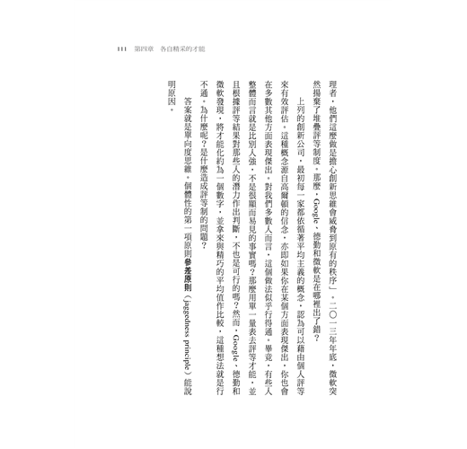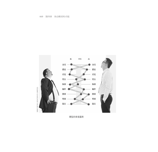 但我們希望別人看見我們的個體性。我們想生活在能做自己的社會裡,我們想順應自己的本性去學習、成長、求進取,而不是必須改變自己去吻合人為的標準。這種想望引起一個超級重要的疑問,也是貫串本書意旨的疑問:一個堅信只能參考平均值來評估個人的社會,怎麼可能營造出理解和駕馭個體性的環境?