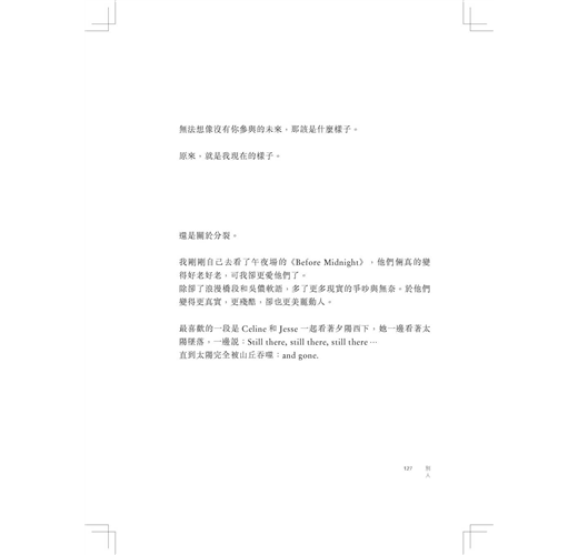他笑了笑,說佩服我有掙脫現實的勇氣,他也想離開現下,去前往,去試著抵達不一定存在的地方。