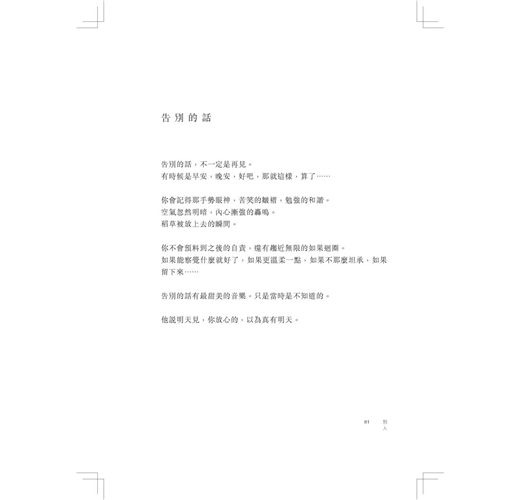 告別的話有最甜美的音樂。只是當時是不知道的。/他說明天見,你放心的,以為真有明天。