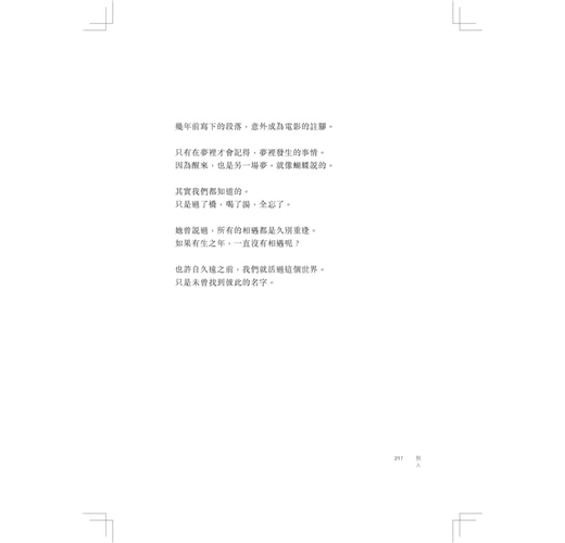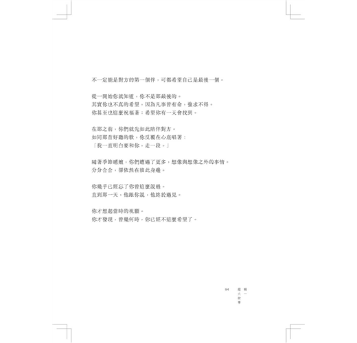 海說,留下來。但你還沒想過餘生。/這裡可以眺望陸地的光,安靜的星星。/你擦掉自己最後的腳印。