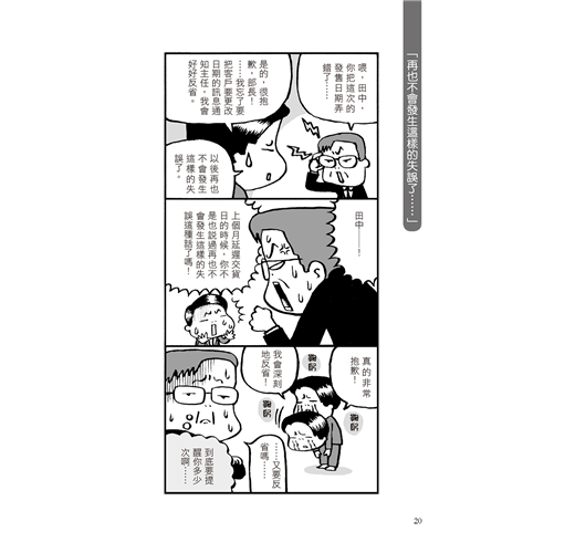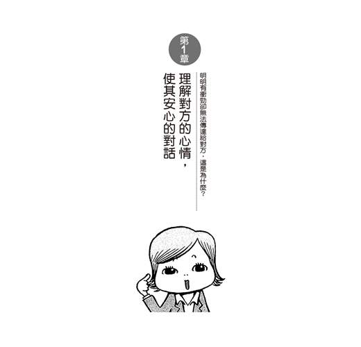 本書呈現職場等商業場合共23種不同的情況,以三格漫畫呈現,讀者因此可快速掌握每一種情況。依照書中編排順序,首先讀者可回想自己曾經發生過類似的問題,然後利用書中列好的結論,試著舉一反三,思考解決個人問題的改善方法。
