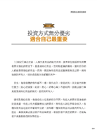 作者從期權如此波動之大,獲利或虧損都驚人的操作模式,轉換到指數型的資產配置,再到股息成長投資術,這之間的摸索、調整和定位,就值得許多投資者參考。