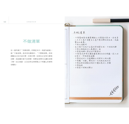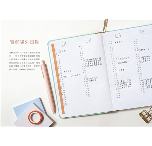 本書從最基本的入門開始,從挑選筆記本到日、週、月、年計畫等單位,