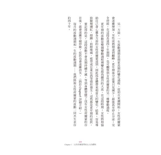 要記得的是,這段波動不會長期持續不滅,等到身體習慣了沒有女性荷爾蒙的存在後,就會逐漸平緩停歇,症狀也會逐漸消失。(將於Chapter5詳細介紹。)