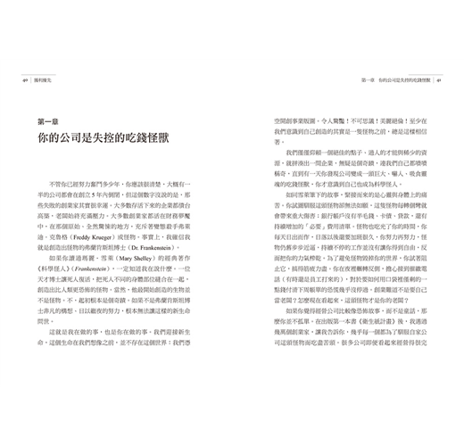 【推薦序】五星級推薦的實用好書 / 林明樟 兩岸跨國企業財報講師 明明做了這麼多金額的生意,公司的銀行帳戶卻常常沒有足夠的現金? 不是因為我們創業者遜,那是因為「人性」! 正常人只要看到收入這麼高,會「誤」以為自己的利潤也這麼多,然後就大手大腳花費過度,在經濟學上,這種需求被稱為「誘發需求」,也就是收入還沒真正變成現金時,創業家已經在自己的腦中設想好如何花掉(投資)這筆錢,然後現金一旦入公司帳後,就直接花掉了。 另一個原因是對自己創業的公司過度樂觀,「誤」以為只要加大投資(金額),就能增加營收,結果...
