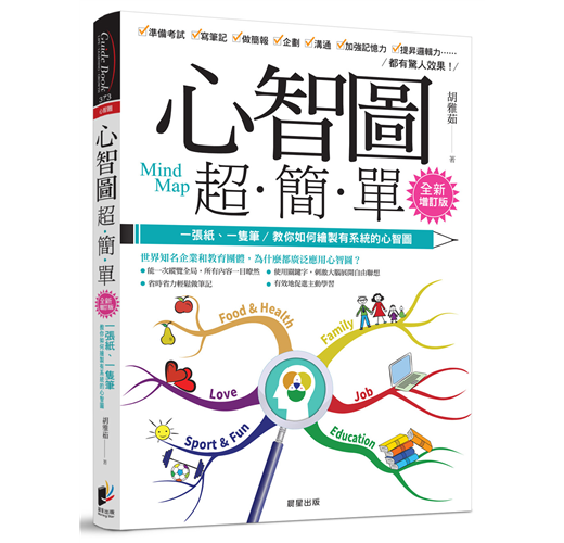 本書針對各種生活或工作的情境,提出一系列包括小朋友實務製作的「心智圖」範例,分別解說並分析其優缺點。「超簡單」則提醒讀者這是一本容易閱讀及學習的書,先從基本的概念,循序漸進詳細說明「心智圖」的使用方法,不論小學生或成人都能即時應用。我們都曾經歷過瘋漫畫和愛卡通的童年,也能順手模擬劇中主角造型偷偷畫上幾筆,當你翻閱本書類似漫畫而且非常有趣的「心智圖」時,親切感油然而生,你會不自覺地想馬上動手畫看看。