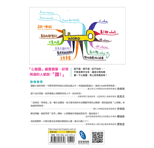 我教過大學時期的胡雅茹,現在她出這本書,教我如何以圖像來處理邏輯思考和整理思緒的技巧。在寫這篇序的當下,我就是活用「提示型心智圖」來擬定預想的綱要及內容,邊想、邊看、邊畫,就是這麼簡單有趣。如果你認為「活到老,學到老」是一種生活的態度,每天都有新的生活體驗等著你去解讀,那你就需要「心智圖」加速學習效果。