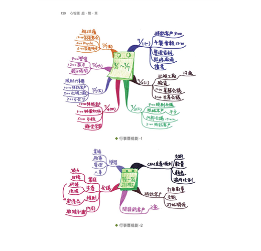 2.整理型心智圖:規劃行事曆、閱讀筆記、聽講筆記……