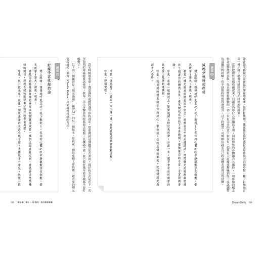 當然,我向來就是個夢行者(dreamer)。只是,我從未想過要寫一本有關懷孕母親發揮夢行力量的書。我只是一味地浸淫於無限瑰麗的夢行之中,亦即我與那位在我體內安靜成長的美麗寶寶之間的關係;除此以外,沒有其他事比這份關係更重要的了。