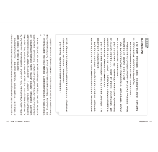 現在,你已擁有自己的工具——夢行練習,也學會以平和的方式與你的身體對話,並從中引出最極致與理想的結果。這裡再為你提供另一個練習。