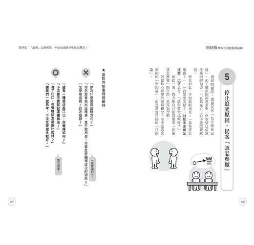 ‧阿德勒技巧1:碰到難題時,別追問發生原因,而是放眼如何解決。