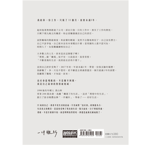 出社會的第一份工作,只做了11個月,我終於受夠了,多待一天也撐不下去,帶著一份被輕視的爛履歷,未滿一年的年資,我義無反顧的丟掉一切,沒有財力背景,沒有靠山,明明怕得要死,卻還是衝了出去,辭職,去做自己真正該做的事,實踐那個「本來就該實踐的自己」。