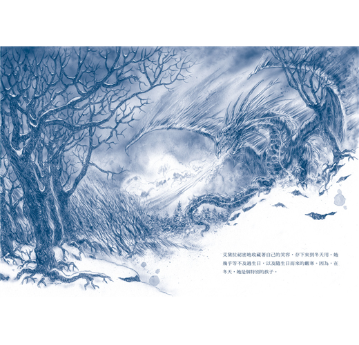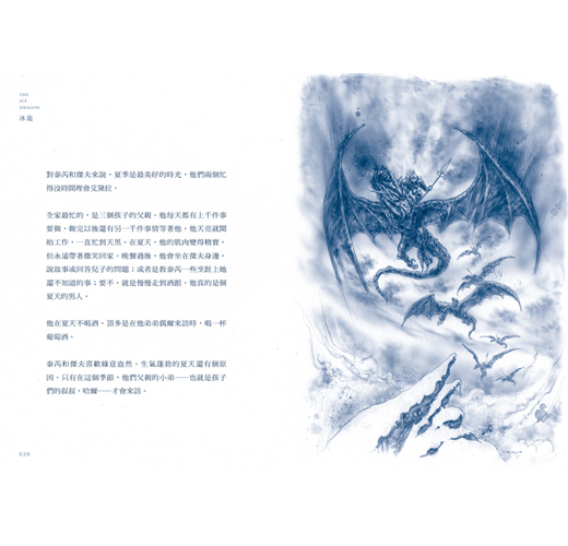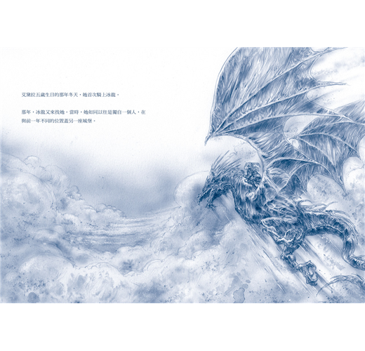 至今他已多次受邀至米蘭、紐約等城市舉辦個人特展。絡約以渲染技法搭配單特色反差畫面,呈現《冰龍》的壯麗綺美,深入女孩與龍的神祕傳說。