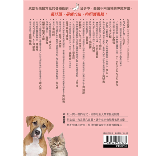 這絕對是一本,每一個家裡有毛孩的主人們必須閱讀的書!在說人話的獸醫師指導下,我們也能成為一個盡責的園丁,讓我們的愛,更加落實和貼近彼此;讓我們所愛的,都得到應有的理解和照顧。
