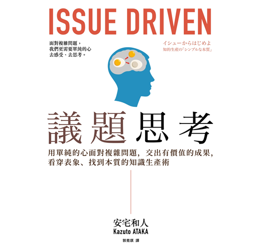 這就是議題(issue)。 作者安宅和人現任日本雅虎策略長,擁有腦科學博士學位,曾是麥肯錫顧問的他,從自己的三種職涯中,發現高效率、高產出的職場工作者都有一個共通點,那就是他們並非「很快地完成工作」,而是動手做之前,用自己的感受和思考,以單純的心判斷「這個議題(issue)重不重要?」「哪些是有價值而且真正該做的工作?」,以及「真正的問題究竟是什麼?」