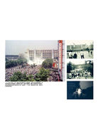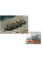 熊熊烈火伴隨著縷縷濃煙壟罩著整個天安門,一群士兵正把學生的物資全堆起來放火燒掉。這裡沒有一個老百姓,這個世界全都是穿著卡其布的士兵。這幫頭戴鋼盔的男人唯一的任務就是毀滅證據。他們仔細搜索被匆忙棄置的帳篷、睡袋,還有紙張。一落落的紅色長布條在地上翻動著,腥紅的顏色彷彿回應著在這之前發生的流血事件。這是一九八九年六月四日清晨;暴力雖然看不見,但是依然存在。