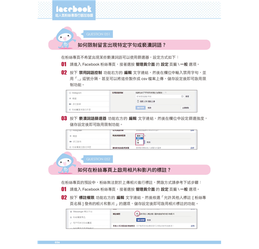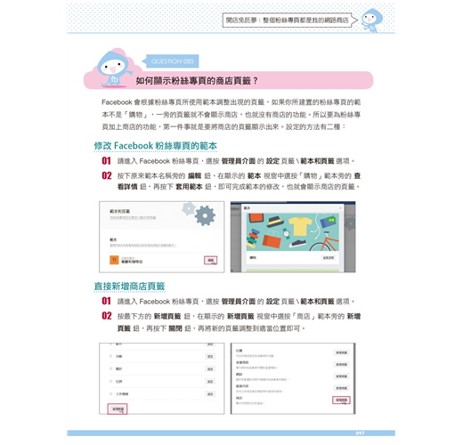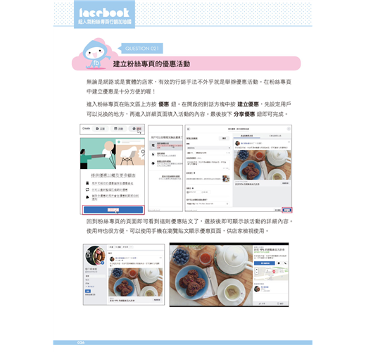 本書從粉絲專頁的基礎建立、進階管理、社群外掛、網路開店、社團建置、