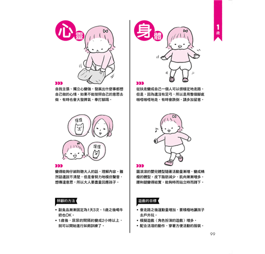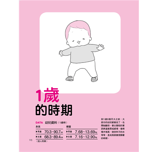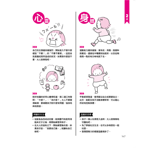 本書以圖解方式介紹0~2歲寶寶的成長階段,包括各個時期的成長重點、身心方面要注意的地方,以及可以和寶寶進行的遊戲,同時還會列出每個遊戲的重點、能夠訓練寶寶的哪些能力,相信可以為新手爸媽的育兒之路帶來許多幫助。