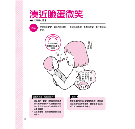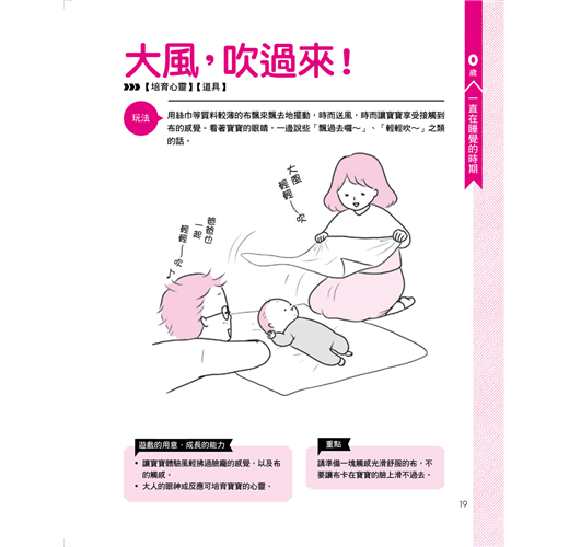 雖說如此,但是把大人的快樂強加在寶寶身上的話,終究還是跟對寶寶置之不理沒兩樣。寶寶的認知能力、身體能力、心理機能,與大人相當不同。請充分了解這個特性,試著享受與寶寶共處的時光。