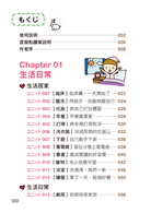 全書分成4個章節、15個主題、122個生活情境,從居家生活、校園、職場、休閒、購物,還有各種大小事件、節慶活動,通通都有。