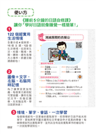 我將整本書的內容分為122個生活必備情境,每個單元都有單字、例句、幫助理解的小短文、會話句以及睡前小故事。每個章節雖然都很簡短,但內容相當豐富...