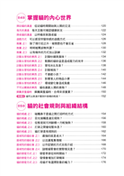 本書從貓的睡眠、活動、飲食、身體結構、感情表現、社會性、組織,