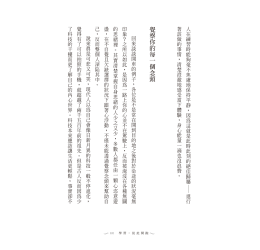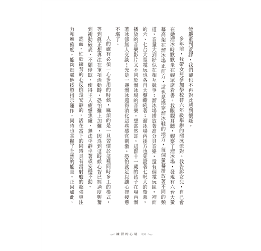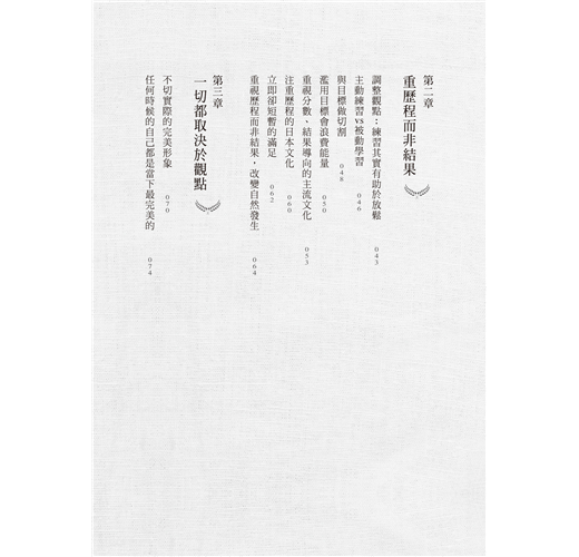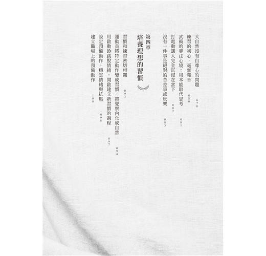 本書教你以簡單的方法培養練習的心境,在追求目標時以正念專注於過程,以輕鬆的身心「刻意而有心」地重複練習,免去不必要的內外掙扎。如此一來,你就不會因為壓力或焦慮而放棄,你的練習才能真正產生成果!