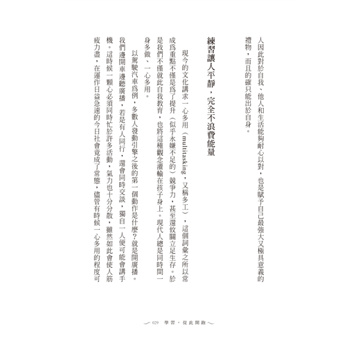 不焦慮、不心煩、有耐心、心情平和地享受過程,終至精通技能。