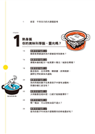 前言 千年功力的大廚隨堂考 Chapter 1 熱身篇 你的美味科學腦,靈光嗎? 真實情境申論題Q1 鄰居家那鍋滷肉為什麼總是特別美味? 真實情境申論題Q2 煮糯米飯的配方一帖竟要十萬元!祕訣在哪裡? 真實情境申論題Q3 脆皮燒肉、北京烤鴨、糖葫蘆、炭烤燒餅,請問它們的美味共通點? 真實情境申論題Q4 為何同樣的臊子在魚香茄子中會有油騷味,而爆炒蝦仁卻沒有? 真實情境申論題Q5 大明蝦要怎樣料理,口感才能鮮脆彈牙? 真實情境申論題Q6 哪一種油,可以控制油溫不過火? 真實情境申論題Q7 夜市的骰子牛肉為什麼剛開市的時...