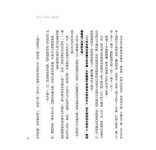 「在她的筆下,中年的窘迫是一時的,女性的灑脫是一世的。」(慈懷讀書會)