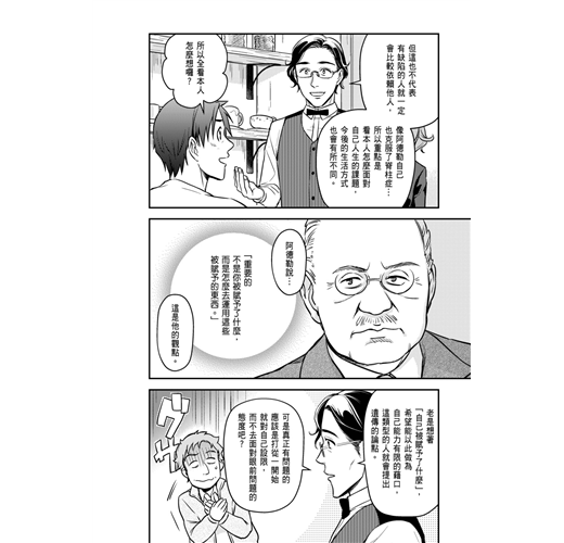 愛書成痴的我,每次看書時都會很想一口氣看到最後,或許這也是因為曾經有那段在理髮院看漫畫的經驗才培養出的個性吧?「書一定要有趣」,雖然我不常看漫畫,但可以協助讓阿德勒的思想變得有趣,是我決定參與製作的關鍵因素。