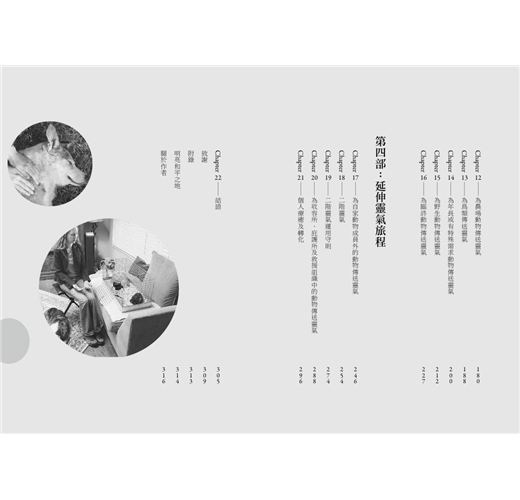 書中列舉出【貓狗】、【兔子】、【老鼠】、【鳥類】、【馬】等各種動物的靈氣施作方式,