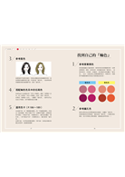 【特色4】妳常常買錯衣服嗎?別再忽略「鮮豔度、明亮度」,精準不敗的選色小細節讓妳更完美!只要稍微改變,就能輕鬆扭轉太過沉重、不協調的感覺!仔細看看所有服飾,妳會發現就算是「白色」也有奶油白、米白和純白;即便是牛仔褲也有不同種丹寧色、款式。跟著本書指引妳一定能找到自己的完美精準色!