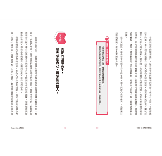從「上台前」的準備到「站上台」的聚焦說話術,再到「下台後」的反思與改進,