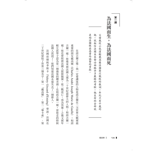 目錄 邱吉爾 第一講從留級生到一舉成名的作家 第二講 戰地記者經驗,讓他對大英殖民主義充滿批評 第三講 南非:入獄越獄,膽識,從此改變邱吉爾 第四講從戰地英雄變成政治明星 第五講沒有人不犯錯,也沒有人是天縱英才 第六講從受盡排擠噓聲,再度登上歷史舞台 第七講《第二次世界大戰回憶錄》 第八講戰時內閣與下野人生 第九講這一生,受夠了!不必遺言 戴高樂 第一講為法國而生,為法國而亡 第二講遠見的另一個代名詞:孤獨與誤解 第三講成立流亡政府,不投降的戴高樂 第四講寬恕你的政敵,讓法國團結一致 第五講...