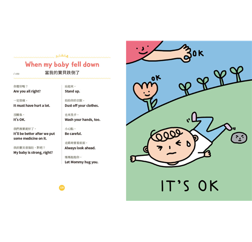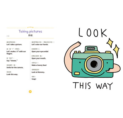 ◎書中詳實記錄了一個小孩子第一次接觸英語後常聽到的英文句子,並經美國媽媽、幼兒園園長、外籍教師們協助完成本書,內容全是美國爸媽日常對小朋友使用的英文用語,簡短又實用。
