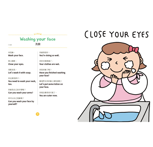 ◎集結最完整的1200多句簡單英文短句,從每天起床開始,如叫醒孩子、穿衣、吃飯、整理玩具、遊戲…等。