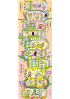 打開《森林100層樓的家》後,立即進入目不暇接,充滿驚喜與幻想的尋寶之旅。隨著連續向上翻閱、欣賞細膩精美的描繪,以及不斷唱數的遊戲,彷彿在熱鬧旋律中,一步步踏上音樂演奏的舞台。不同物種富巧思的生活場景,也讓小讀者在創意想像外,增添了對生態習性的知識,進一步引發科研的精神。