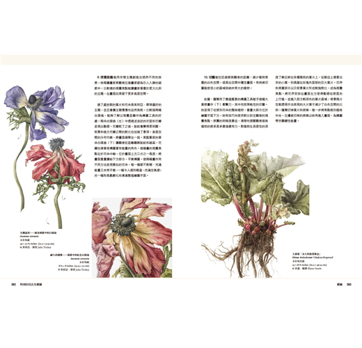 書中以精美細緻的照片清楚展現在實務操作上的各種細節,包含了超過六十位國際知名植物繪圖畫家的作品,藝術性極高的每幅作品也同時保有植物學的知識性和正確性,絕對能讓讀者驚嘆不已,愛不釋手。