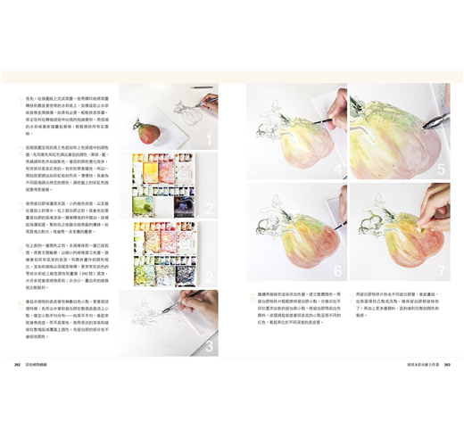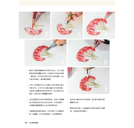 「本書將繪畫步驟呈現的鉅細靡遺,畫家們手把手的帶大家把最想知道的秘辛不藏私地帶大家經歷一次。但與其說是秘辛,其實是平時學習植物繪畫的同好最想、但也最不知道該如何詢問的「眉角」。而這些眉角若不仔細挖掘,就無法造就每一幅生動精緻的圖畫。本書囊括了植物藝術繪畫的許多技巧,且盡可能地描述創作的過程,這應該就是所謂的「魔鬼藏在細節裡」。」