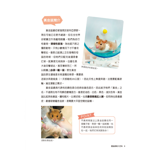 ‧了解鼠鼠:黃金鼠、三線鼠、一線鼠、老公公鼠、馴化大小鼠、天竺鼠……掌握牠們的習性,才會清楚知道自己到底適合養什麼鼠,如何照顧牠們一生!
