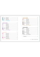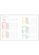 先選擇主色,然後再選擇與之相配的顏色。這樣,就能讓你心目中的顏色看起來時尚又有設計感!可以廣泛應用於工作和日常生活中使用的設計、插圖、POP、手作、簡報到社群媒體等等。就算主要顏色相同,依照不同的配色數與搭配,視覺呈現就會截然不同。全書共有1600多種方案,當需要相關的配色靈感時,請務必參考看看。