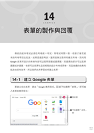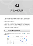 本書依照使用 Google 雲端平台所必須學會的技能,將內容區分為七大篇。分別為「遠距教學必備利器 - Google Meet」、「師生互動平台 - Google Classroom」、「Google 文件應用」、「Google 簡報應用」、「Google 試算表應用」、「Google 表單應用」、「Google 教學的好幫手」,整體架構十分完整。此外為了提高閱讀性,編排上以實作為主,功能說明為輔,並加入步驟說明以及圖說,讓大家輕鬆掌握遠距教學時的必備技能。