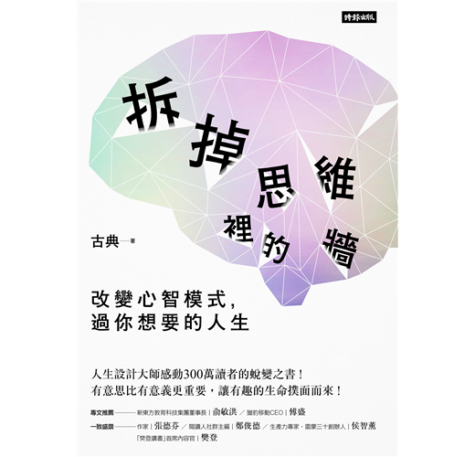 也許,你不曾意識到許多人生困惑的背後,往往藏著一堵堵思維裡的牆,因而被慣性思考框住,不敢追求你真正想要的人生。暢銷書《躍遷:「羅輯思維」最受歡迎的知識大神教你在迷茫時代翻轉人生的5大生存法則!》作者古典在本書中拆解了人生7大問題:怎麼看待成功、要不要躺平、如何有安全感、如何活得有趣、怎麼做自己、怎麼做職業選擇、如何理解與家人的衝突,刷新你的認知,升級你的人生。