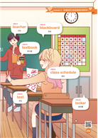 從家裡到校園:房間、教室、科目、時尚、常見物品的單字等。