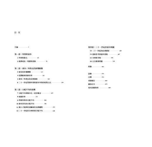 皮凱提從稅收與遺產紀錄著手,重新檢視橫跨二十餘國長達二百餘年的數據,分析工業革命以來的全球財富分配動態,藉此提出一套系統而全面的解釋。他運用龐大的歷史實證資料,論證了「資本報酬率通常會大於整體的經濟成長率」。也就是說,有錢人財富累積的速度其實遠遠快過一般人工作收入增加的速度;富人將愈來愈富,而貧富差距也將愈來愈大。
